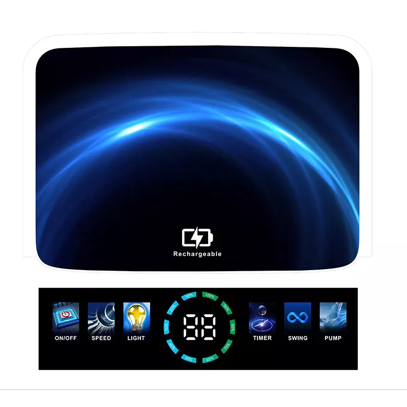 सौरऊर्जेद्वारे समर्थित, रिचार्ज करण्यायोग्य बाष्पीभवन एअर कूलर फॅन त्याच्या अंगभूत बॅटरी रिचार्ज करण्यासाठी दिवसा सूर्यप्रकाश भिजवतो, ज्यामुळे ती पर्यावरणास अनुकूल आणि खर्चात बचत होते. दीर्घकाळ टिकणाऱ्या बॅटरीसह, ती 4-14 तास सतत कूलिंग देते (फॅनच्या वेगावर अवलंबून), त्यामुळे तुम्ही "शक्ती चिंता" न करता दिवसभर उष्णतेवर मात करू शकता.